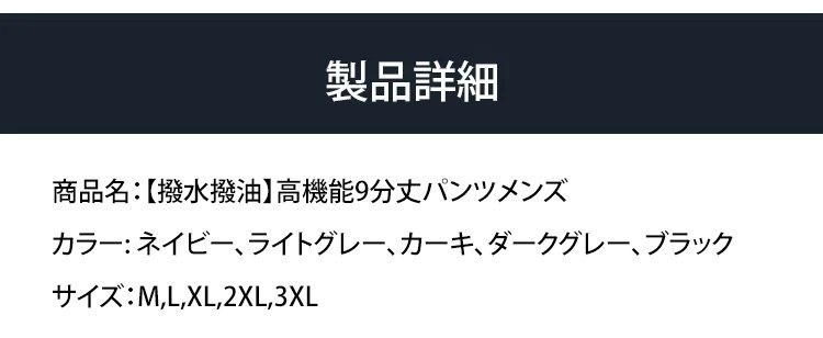 【撥水撥油】高機能9分丈パンツメンズ