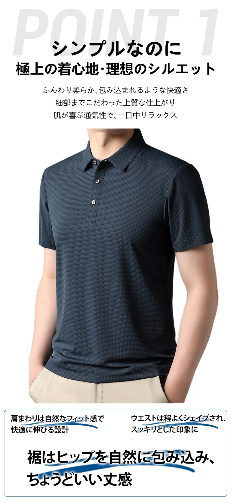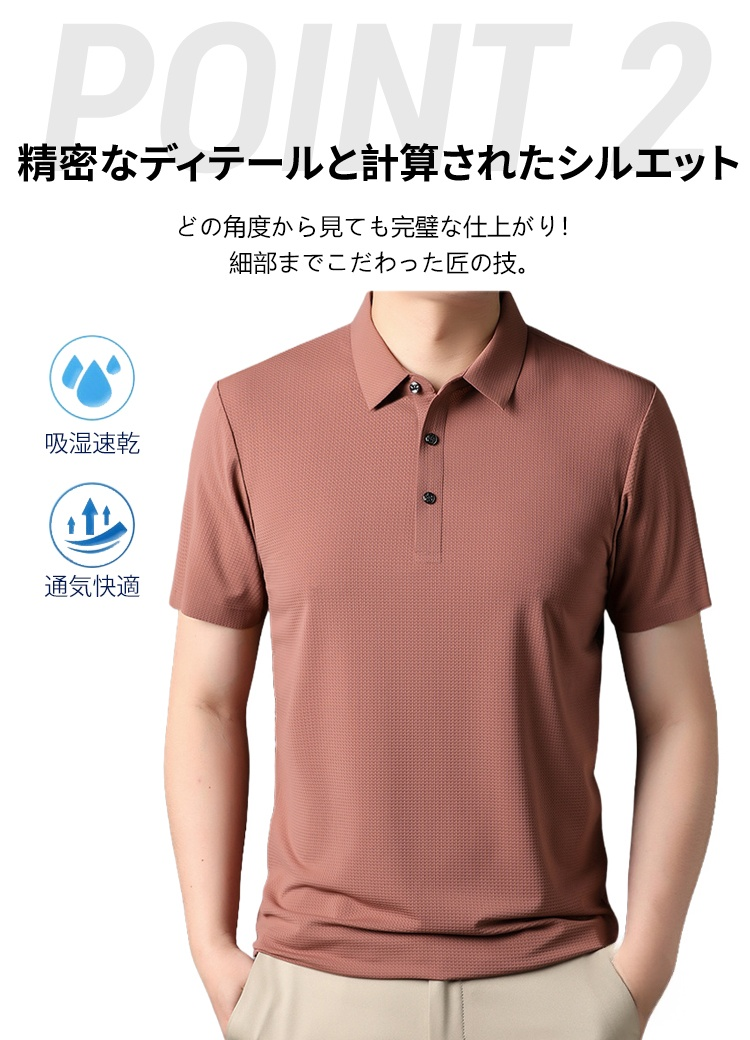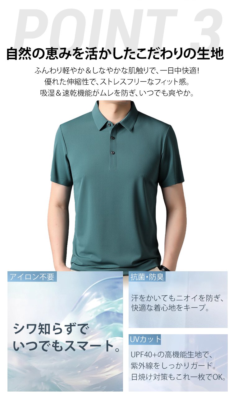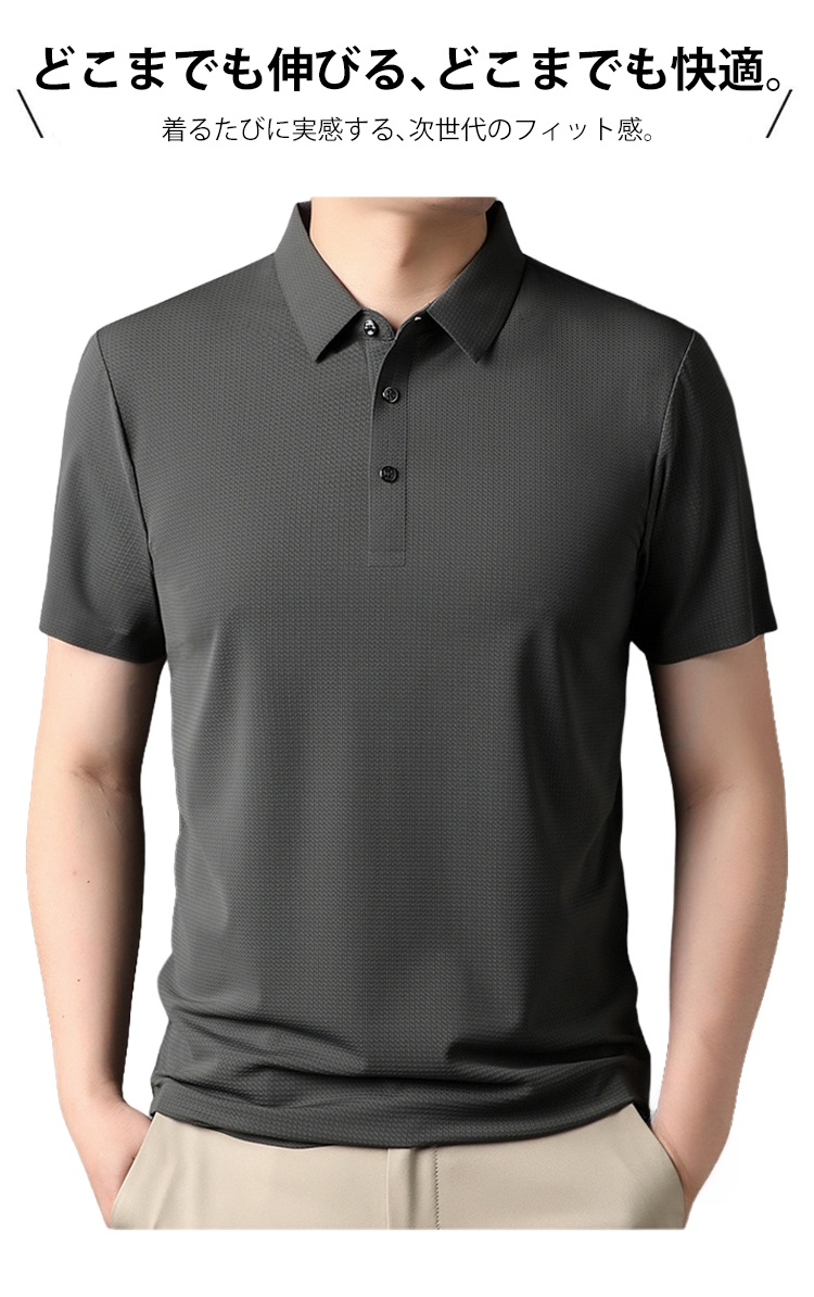 【涼感ワッフル】メンズ半袖ポロシャツ 薄手 ストレッチ 涼感 ドレープ性 通気速乾 襟付きメンズTシャツ シワ防止 ノンアイロン